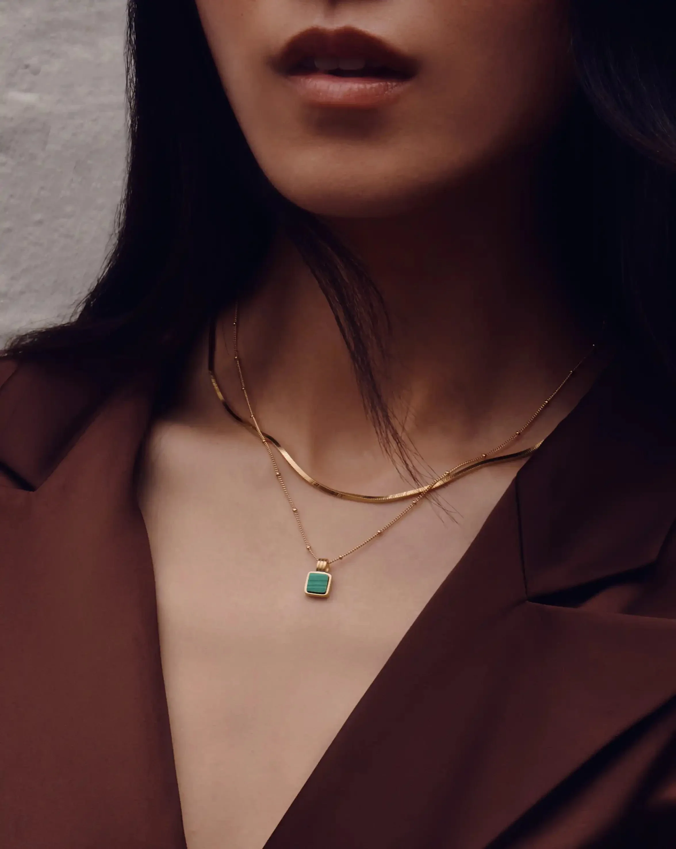 A semi-precious addition to your layers. Paired with a delicate chain, the square malachite pendant, known as the transformation stone, creates a distinctive focal point. Layer this best selling piece with a longer necklace or coin choker for a Lucy Williams duo you'll never take off.